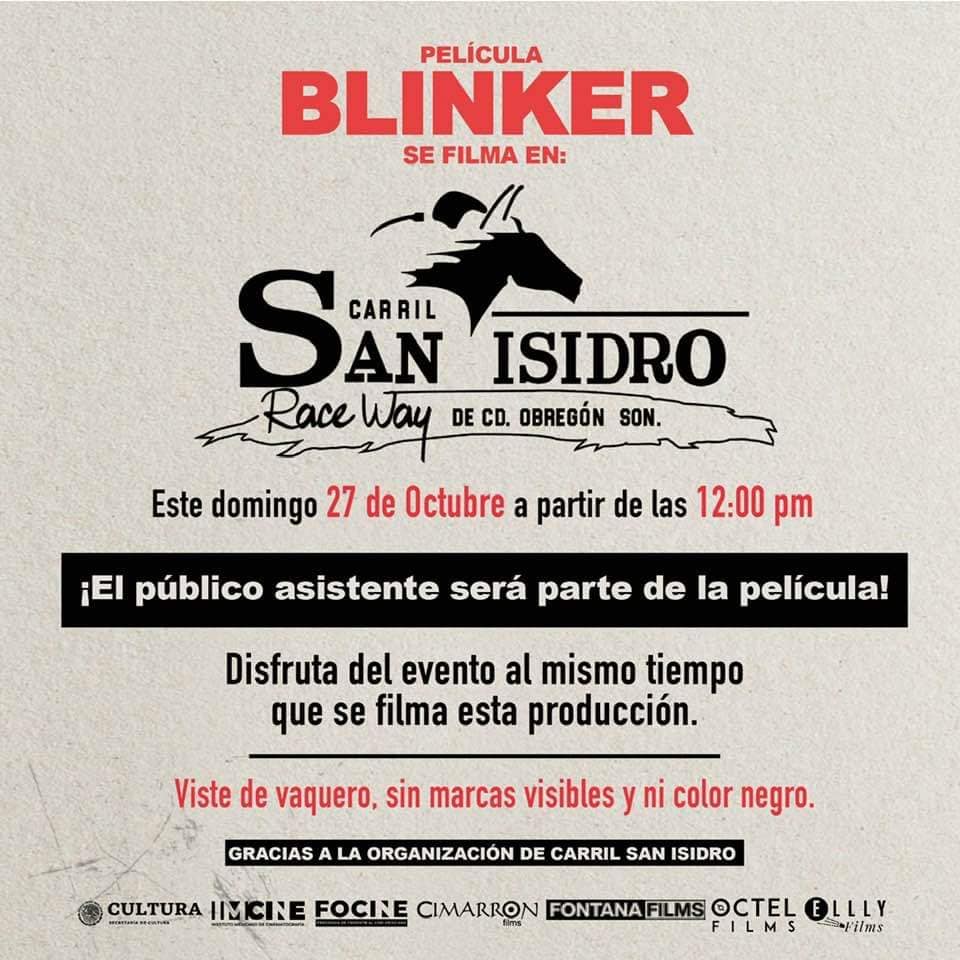 Si alguna vez has soñado con aparecer en la pantalla grande, la producción de la película Blinker te da la oportunidad de participar como extra en las escenas que se filmarán este domingo 27 de octubre en el Carril San Isidro, en Ciudad Obregón.